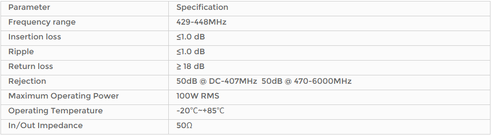 >High Rejection: ≥50dB out-of-band rejection to effectively suppress interference